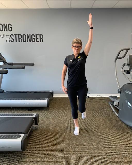 3) SINGLE LEG STANDING WITH ARM SWING OR REACH OVERHEAD