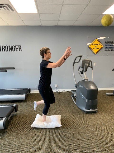 8) SINGLE LEG STAND ON UNLEVEL SURFACE WHILE TOSSING A BALL